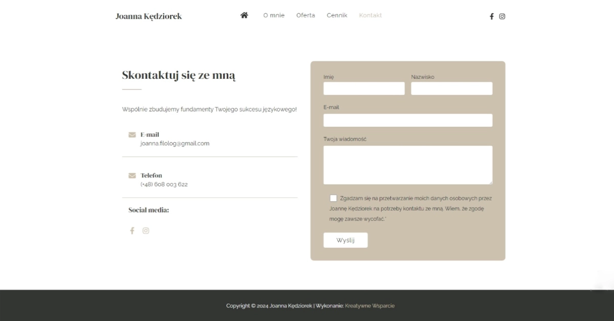 Strona wizytówka dla nauczycielki języka angielskiego – Joanny Kędziorek
